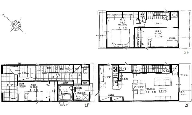 - 27.32坪~29.21坪(90.32㎡~96.59㎡)