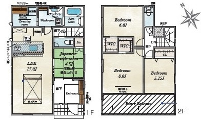 LDK 17.5帖 1室/和室 5.2帖 1室/洋室 7.8帖 1室/洋室 6.0帖 1室/洋室 5.2帖 1室 - 向き