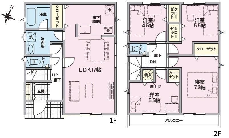LDK 17.0帖 1室/洋室 9.0帖 1室/洋室 6.0帖 1室/洋室 5.0帖 1室 - 向き