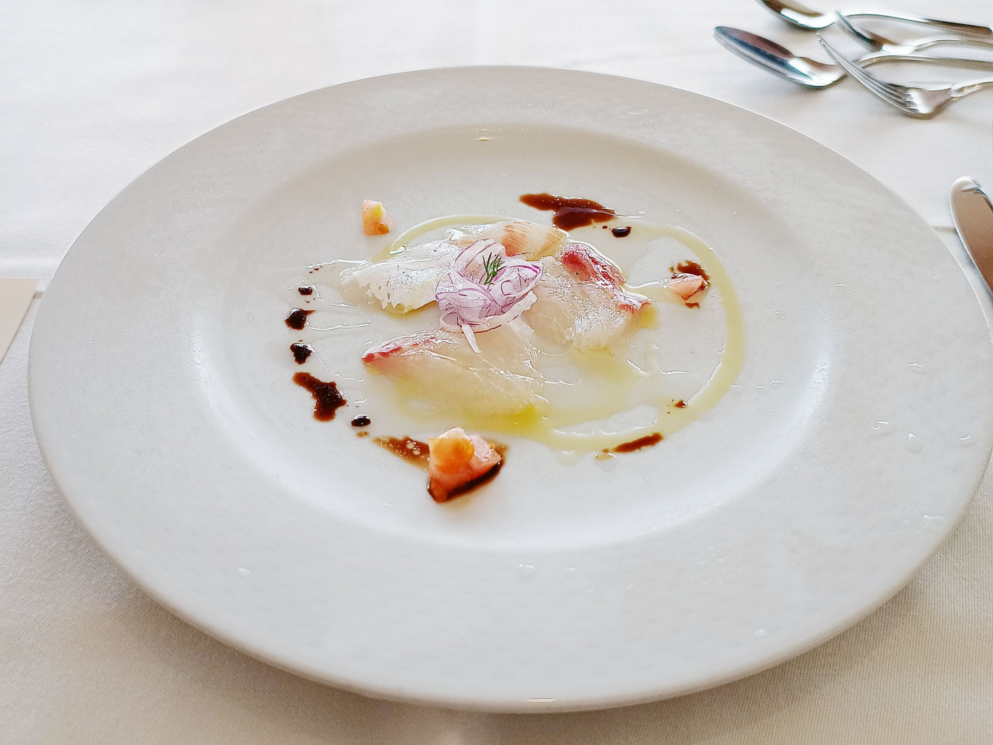 最初に頂いた前菜~鮮魚のカルパッチョ~は、全員がそれぞれ違った食材というこだわりっぷり!