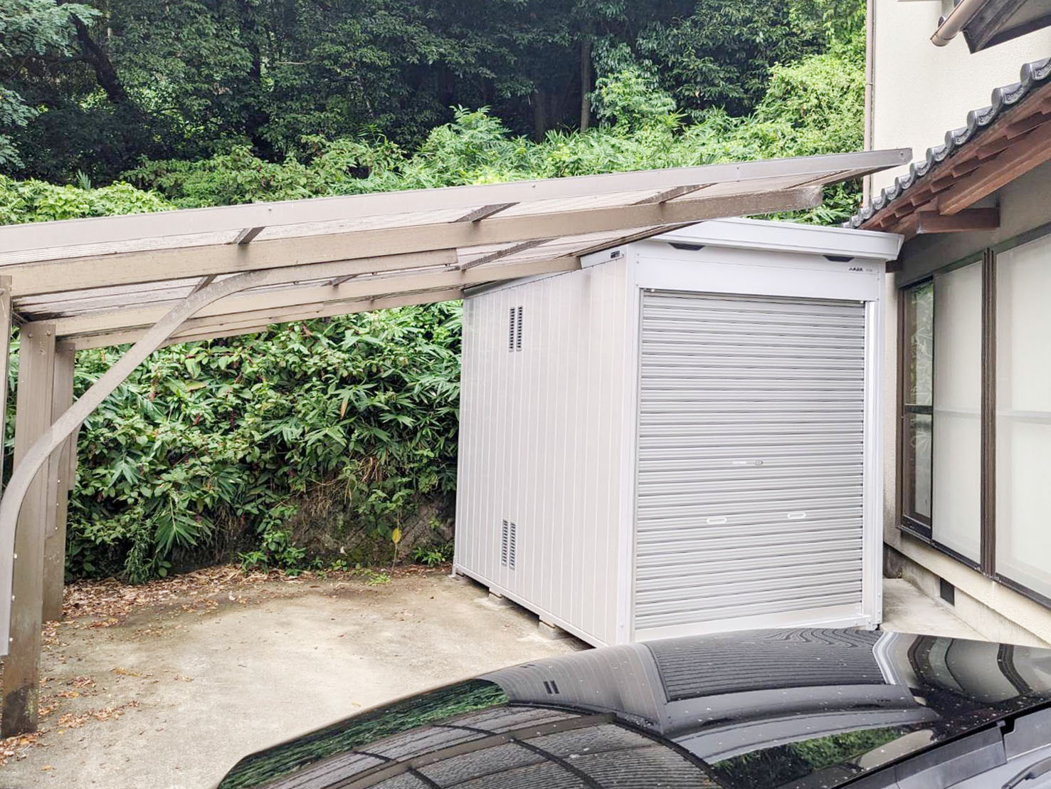 Y様の大切な愛車を保管するバイク専用ガレージも新設。