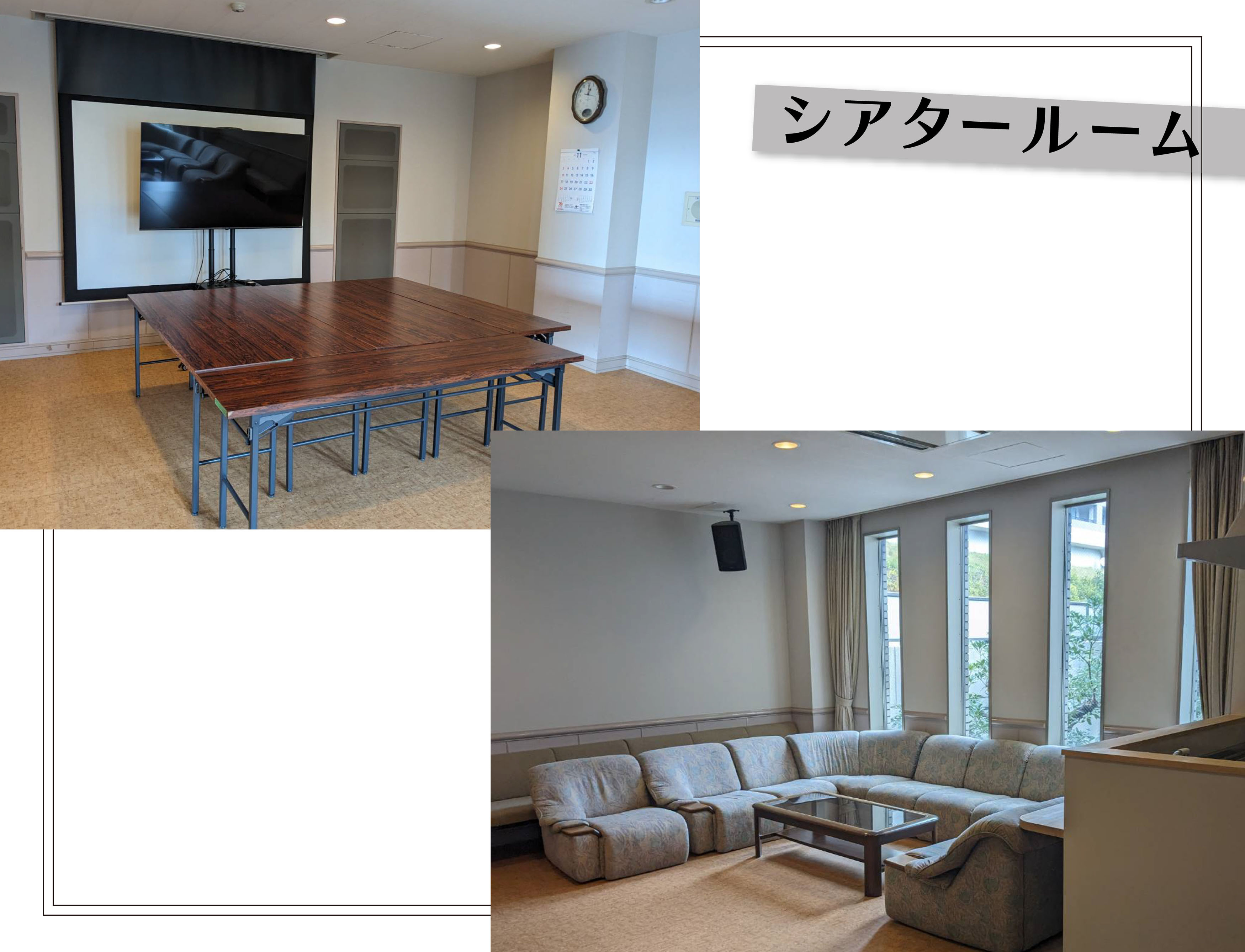 管理棟にはシアタールームやアスレチックルームもあります。