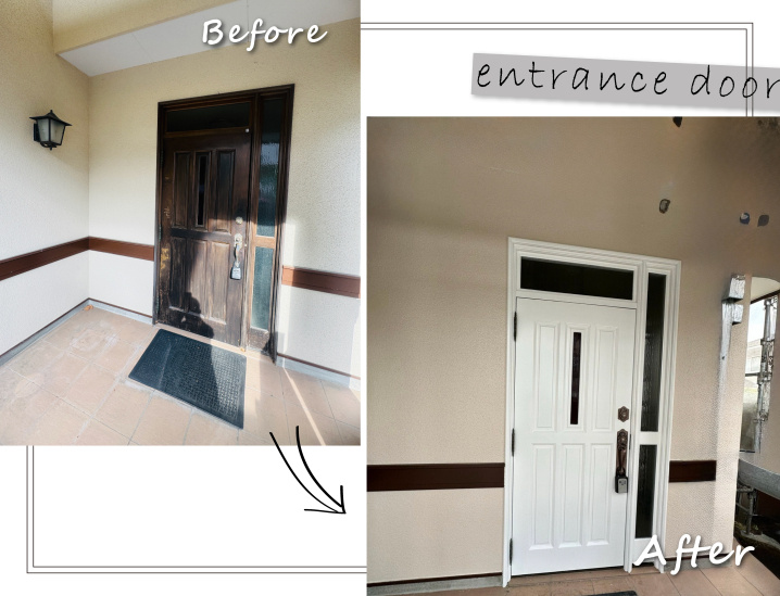 玄関ドアは既存の物を活かしたいとのことで塗装・取っ手・シリンダー交換