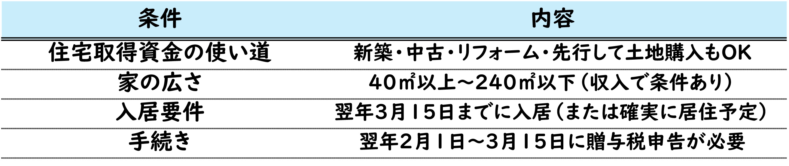 ✅受贈者:18歳以上の直系卑属&年収2000万円以下