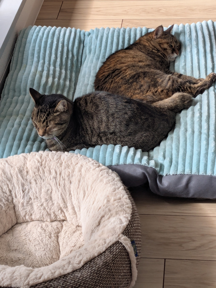 暖かな日差しの差し込むリビングは猫ちゃんたちも気持ちよさそう♪